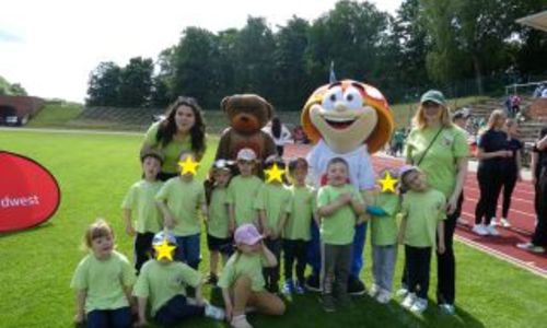 Am 20.05.2025 fand für unsere Vorschulkinder die Bummi-Olympiade statt. Gemeinsam mit Kindern anderer Kindertagesstätten aus Wismar trafen wir uns im Kurt-Bürger-Stadion. Nach einer kurzen musikalischen Erwärmung mit Bummi konnten wir uns im Weitsprung, Weitwurf und Laufen beweisen. Zum Schluss wurden alle Teilnehmer mit einer Medaille geehrt.