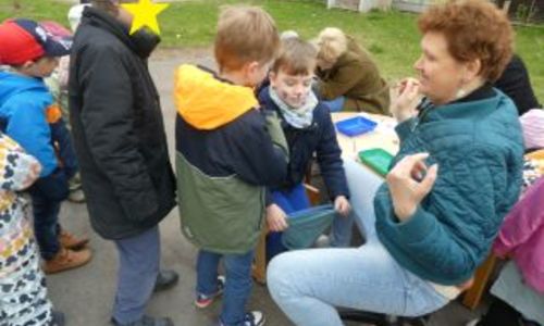 Heute setzen wir die Tradition des Maibaumfestes in der „Kita Plappersnut“ fort. Alle Kinder versammelten sich um den schön geschmückten Baum mit dem selbst gemachten Maibaumkranz, um das Fest einzuläuten. An den unterschiedlichen Stationen konnten die Mädchen und Jungen Armbänder oder Herzcollagen aus Frühlingsblumen basteln, Gummitwist hüpfen oder riesige Seifenblasen machen. Besonders beliebt war natürlich wieder die Schminkstationen, die Kinder in kleine Raupen, Spinnen oder Blumenkinder verwandelte.