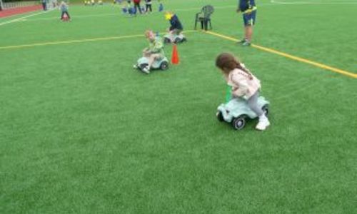 Traditionell fand auch dieses Jahr wieder das Bummi-Spielfest im Stadion statt. Hier konnten die Kinder zeigen, was sie schon können. Beim Weitwurf, Balancieren, Sackhüpfen und Laufradrennen unterstützte uns auch tatkräftig der Bummibär. Ein besonderes Highlight war der Besuch der Feuerwehr und der Polizei. Die Einsatzfahrzeuge wurden genauestens unter die Lupe genommen und sogar die Schutzweste durfte ausprobiert werden.