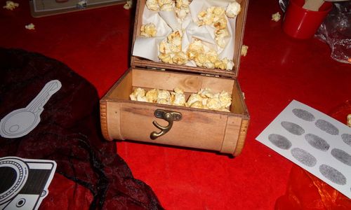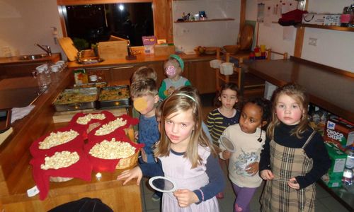Nachdem wir unseren leckeren selbstgemachten Nudelauflaub gegessen hatten mussten wir jedoch feststellen, dass im ganzen Haus Popcorn lag, weil ein Dieb es verloren hat. Gemeinsam verfolgten wir die Spuren und konnten das Rätsel lösen.