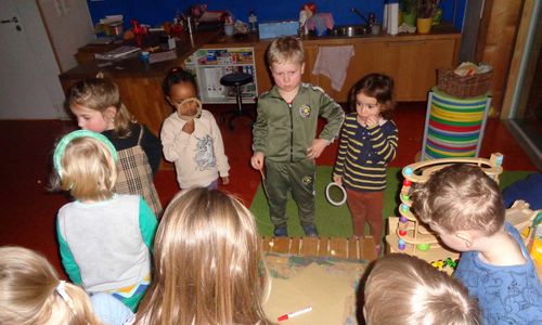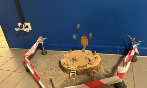 Auch in der heutigen Nacht ist wieder seltsames geschehen! Heute war eine Tür und einige Fenster an der Wand. Unsere Kinder haben außerdem festgestellt, dass einige Gegenstände auf dieser komischen Baustelle eigentlich aus dem Spielzeug ihrer Gruppenräume stammt. Dass ist alles ziemlich seltsam.