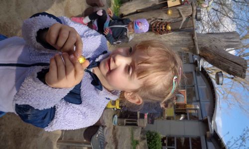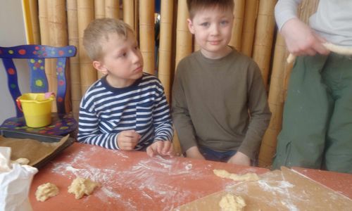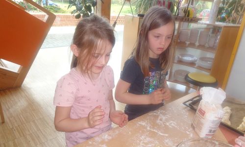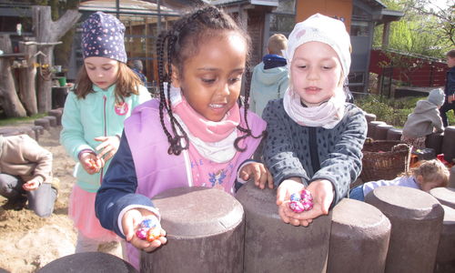 Bevor wir diese fanden haben wir traditionell das Osterbrot am Osterfeuer gebrochen und gemeinsam gesungen. Unser Osterhase hat außerdem nicht nur Körbchen versteckt. Es waren auch kleine Ostereier in der Sandkiste vergraben.