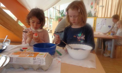 Die Osterfeier naht. Dafür brauchen wir unser selbstgemachtes Osterbrot und viele, viele bunte Eier!