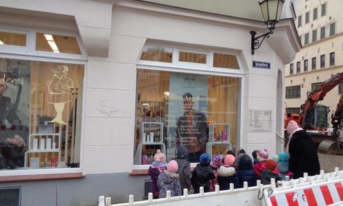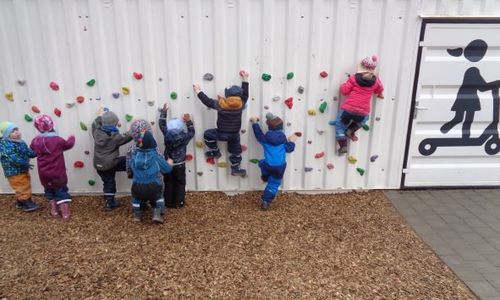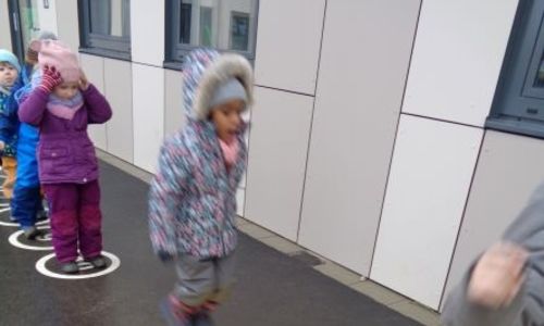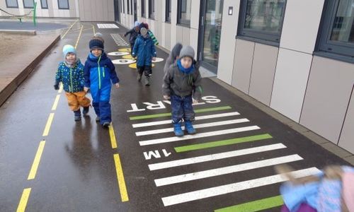 Heute wollten unsere Kinder ganz viel über den Beruf des Lehrers lernen. Nachdem sich am Vormittag schon alles im Spiel der Kinder darum drehte, ging es danach zur Schule, um zumindest von außen einen kleinen Einblick zu erhaschen.