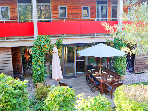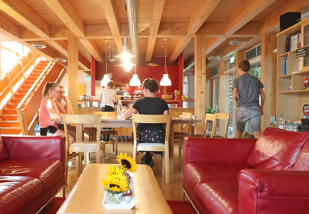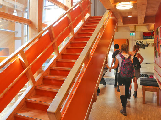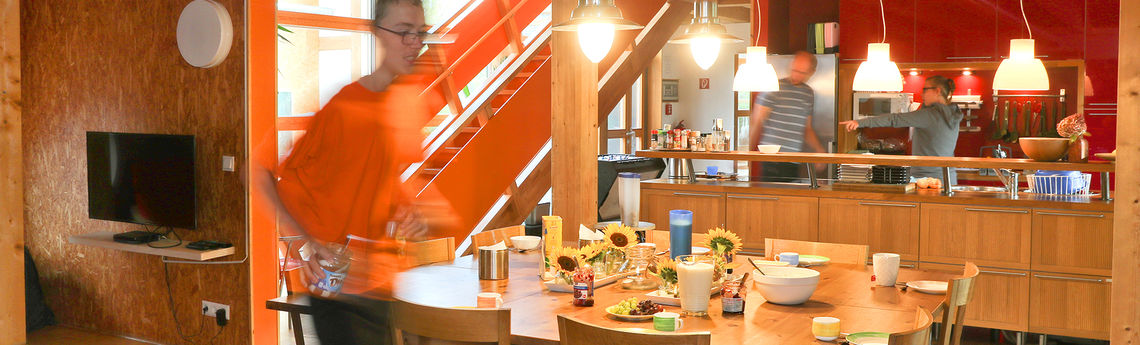 Im modern gestalteten Haus bietet die Wohngruppe 10 Kindern und Jugendlichen in Einzelzimmern Platz für ein Leben außerhalb der Familie. Angrenzend an die Wohngruppe befindet sich eine betreute Wohneinheit für einen Jugendlichen ab zirka 16 Jahren. Ein großer Wohn- und Essbereich mit offener Küche ist der Lebensmittelpunkt für alle. Daneben gibt es viele Nischen für individuelle Tätigkeiten.