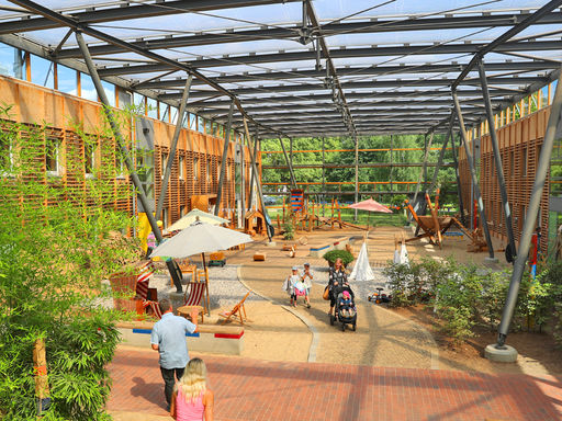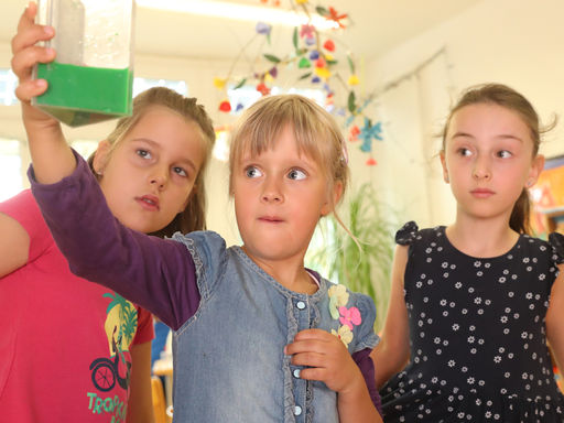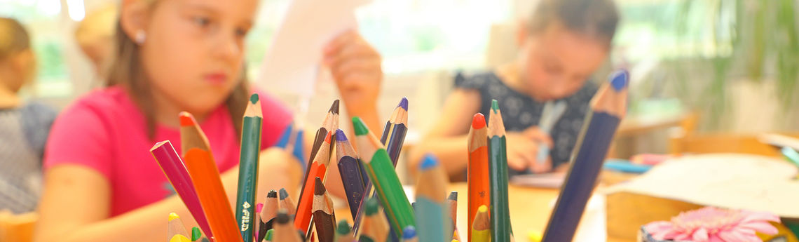 Unsere integrative Kindertagesstätte befindet sich stadtnah im Grünen. Hier kann dank einer modernen, offenen Architektur in hellen freundlichen Räumen gespielt, getöpfert, gekocht, gewerkelt, gemalt und geturnt werden. Der 8.000 qm große, naturnahe Spielplatz, tägliche Lern- und Sportangebote, das bewusste Erleben der Jahreszeiten, spannende Projekte und das wöchentliche Schwimmen lassen die Kinder eine bunte Vielfalt erleben. Es gibt insgesamt elf Gruppen, darunter Krippen-, integrative- und Regelgruppen.